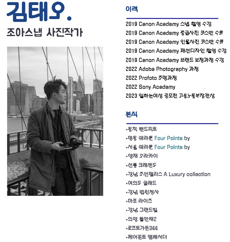 안녕하세요, 조아스냅 김태오 작가입니다 :)